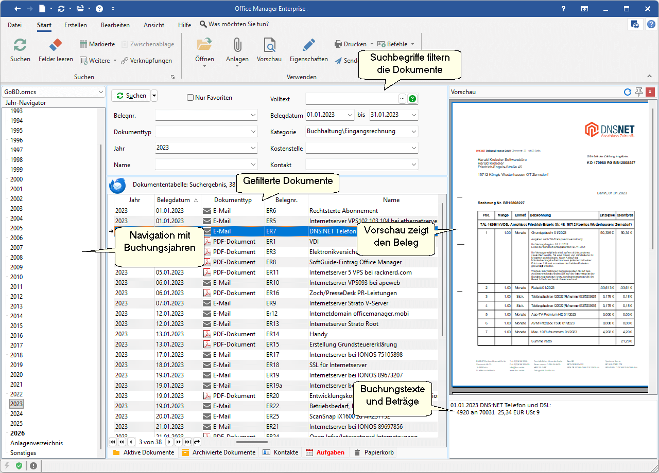 - GoBD-Archiv steuerrelevanter Belege
