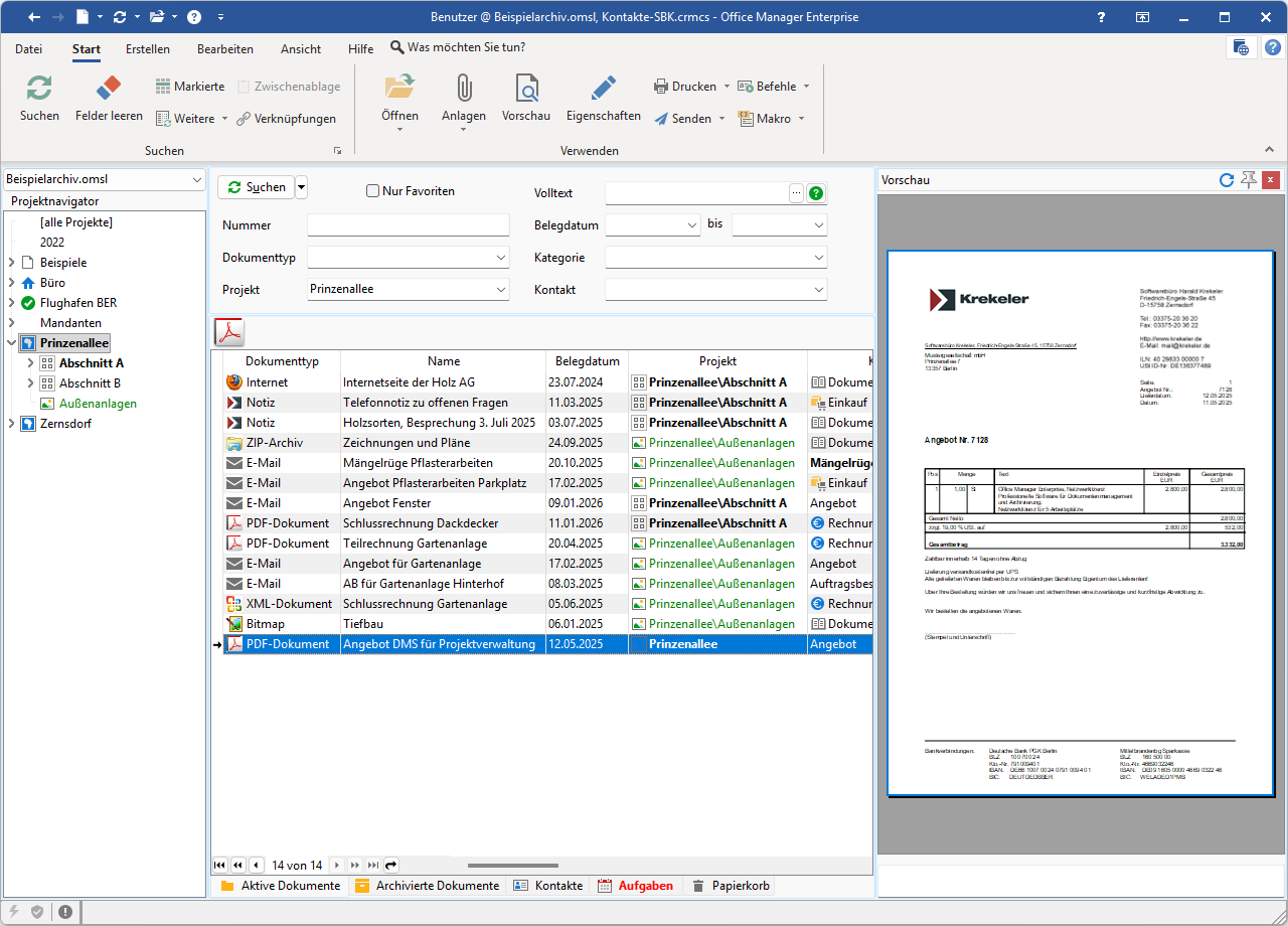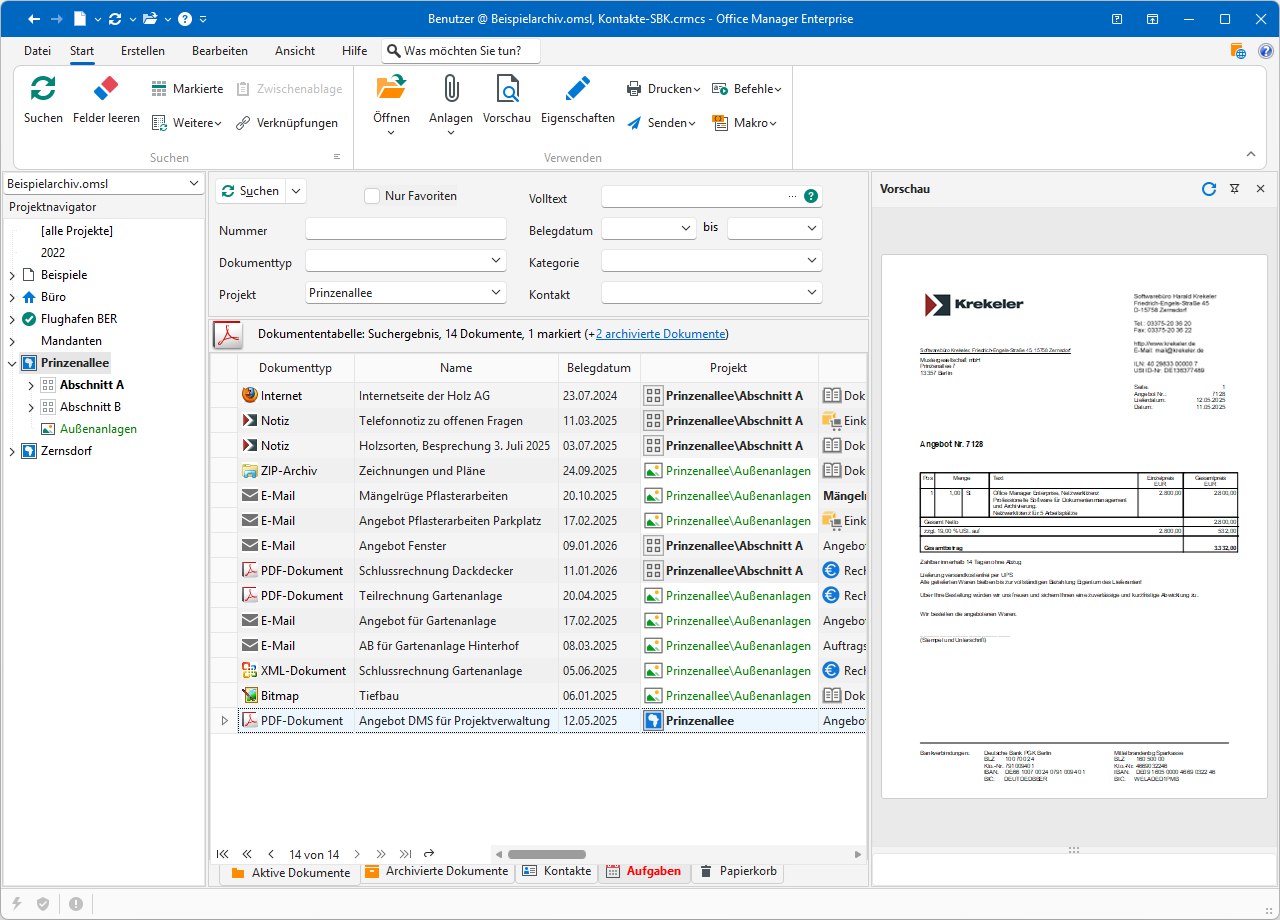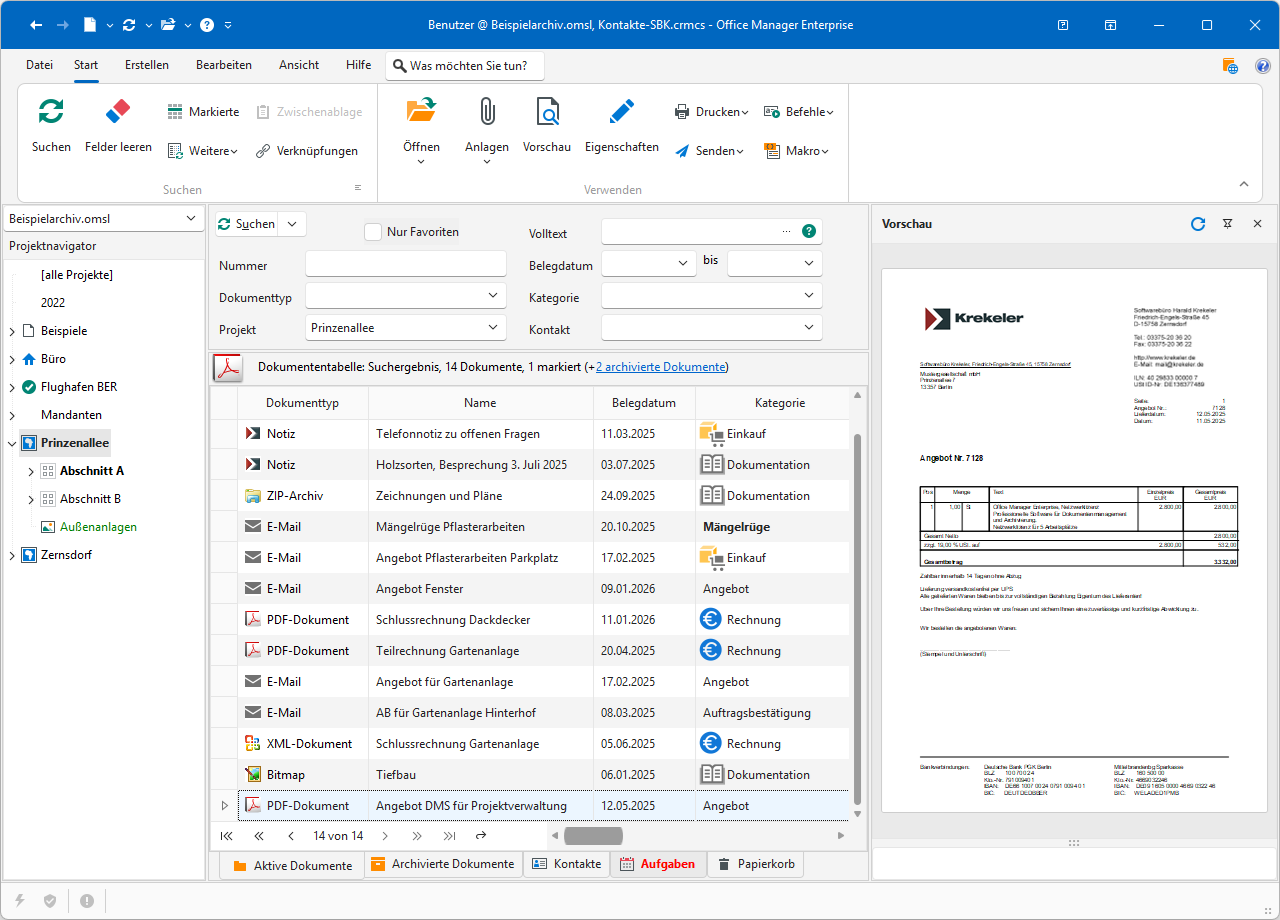 Office Manager DMS ist eine Windows-Software für das digitale Dokumentenmanagement. Sie finden hier die Abbildungen einiger Programmfenster. Sie können sich so ein erstes Bild von der Software machen, bevor Sie diese installieren.