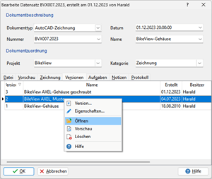 Zu jeder Zeichnung und jedem Bauteil können beliebig viele Versionen archiviert werden. So haben Sie die verschiedenen Konstruktionsstände immer im Überblick.